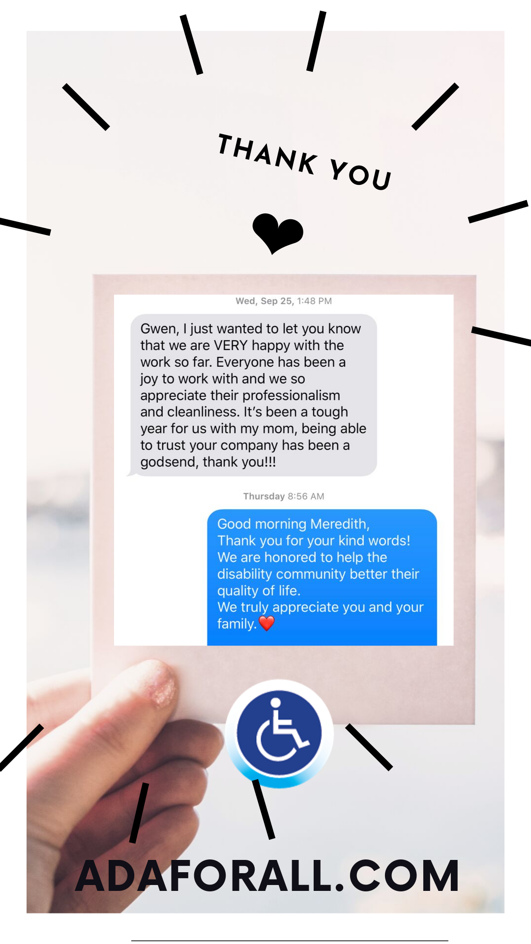 Thank you to those of you who have send us kind notes, text emails or left wonderful online reviews for us on Google places, Facebook, Houzz and elsewhere. We very munch appreciate your feedback and are grateful for the opportunities to make a difference in the lives of so many individuals in many ways. We are blessed to have the opportunity to provide this work. Thank you.